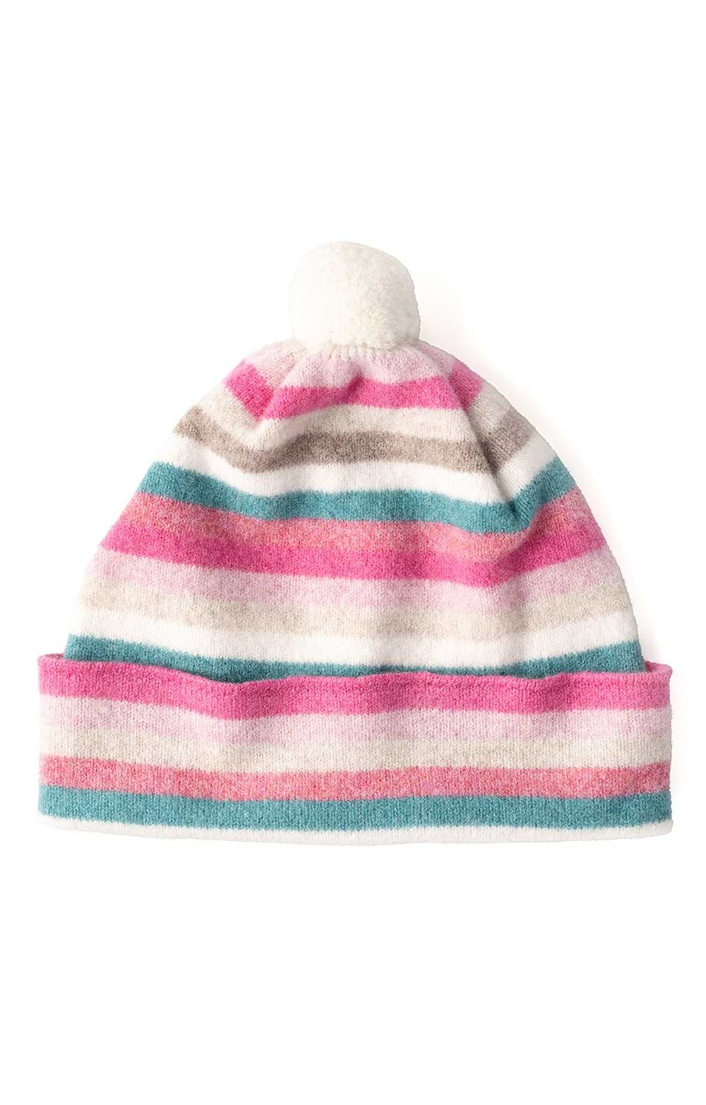 100% pure lambswoolBold striped designPom pom detailRibbed fold edge for secure fitMade in ScotlandStyle with a matching striped scarf for coordinated warmth, or wear with a classic wool coat and boots for chic seasonal dressing.