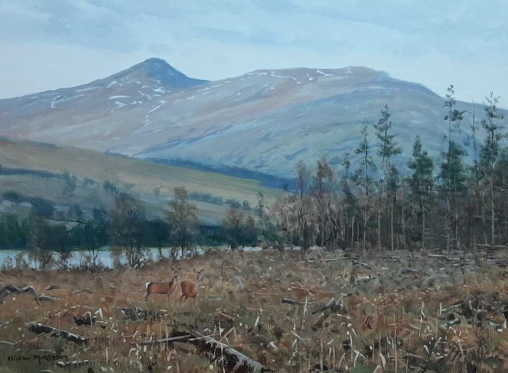 Red Hinds in Clearing, Glen Lyon by Alistair Makinson