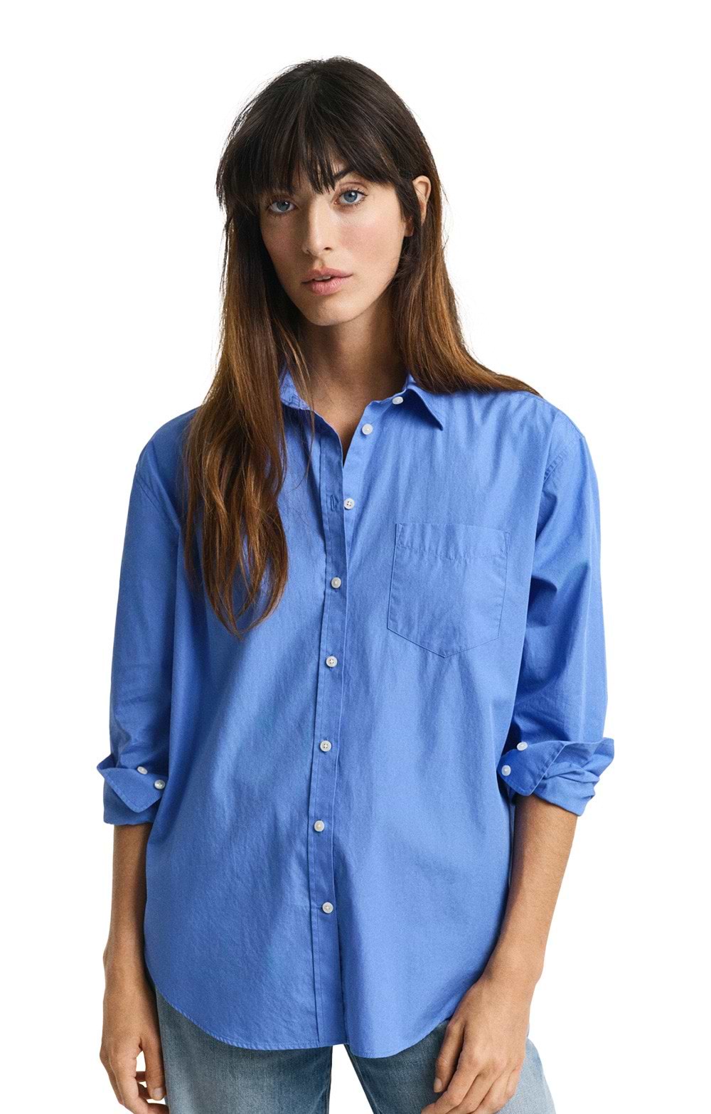 Relaxed fitPoint collarChest pocketBox pleat and locker loop at backGant logo embroidered at sleevePair with slim-fit jeans and loafers for a casual look or style with a pencil skirt and heels for a more polished ensemble.