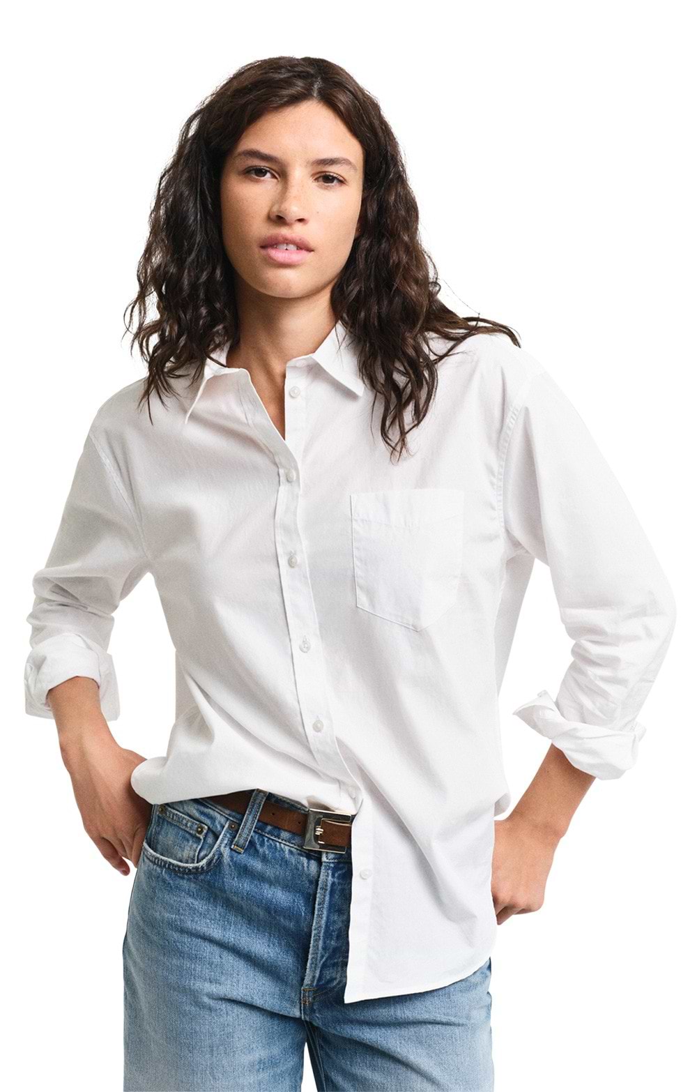 Relaxed fitPoint collarChest pocketBox pleat and locker loop at backGant logo embroidered at sleevePair with slim-fit jeans and loafers for a casual look or style with a pencil skirt and heels for a more polished ensemble.