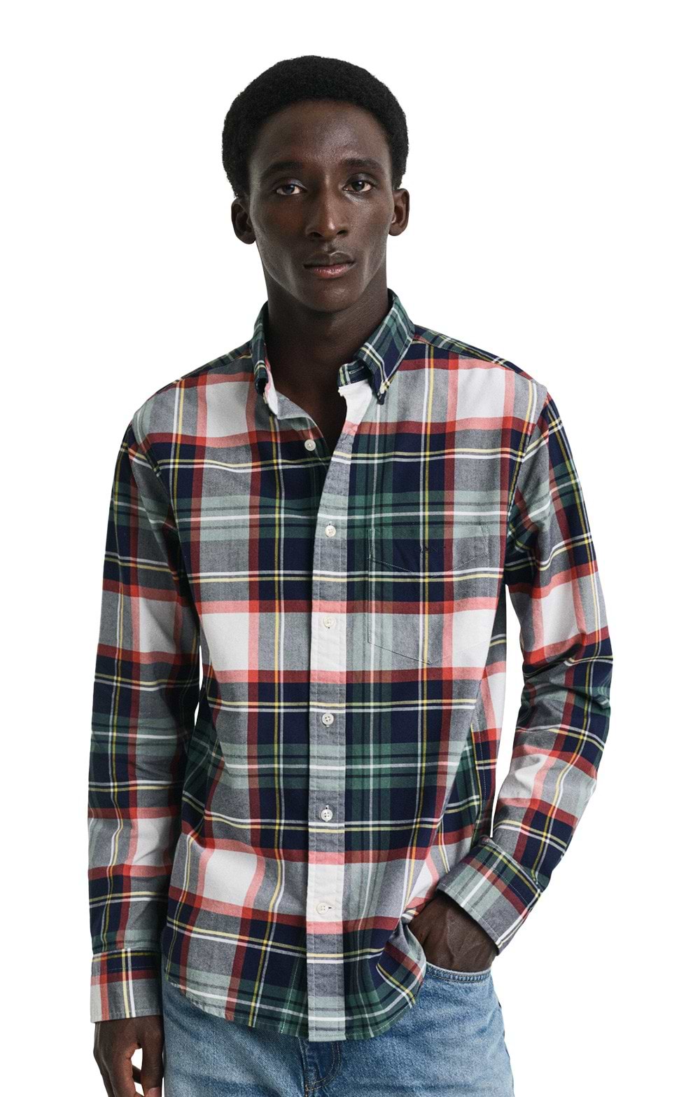 Crafted from 100% organic cotton, it features a soft Oxford weave fabric sourced from Gant's shirting archives. The yarn-dyed checked pattern adds a touch of sophistication, while the regular, untucked fit provides a relaxed yet polished appearance. A classic button-down collar, adjustable cuffs and a curved hem enhance its traditional appeal. Subtle branding is present with the Gant logo embroidered on the chest pocket. Whether you're exploring a new city or catching up by the fireside, this shirt is a versatile choice.
