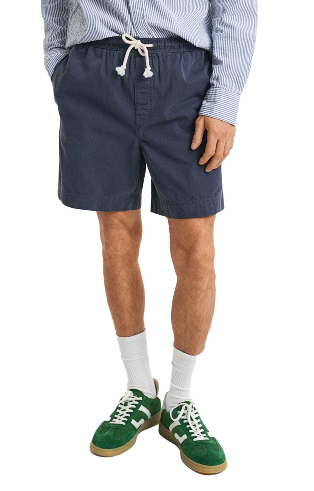 100% cotton fabricGarment-washed for sun-faded effectRegular fitDrawcord waistTwo front pocketsOne back pocketGant logo embroidered on left legPair with a linen shirt and loafers for a refined look or style with a graphic tee and sneakers for a casual ensemble.