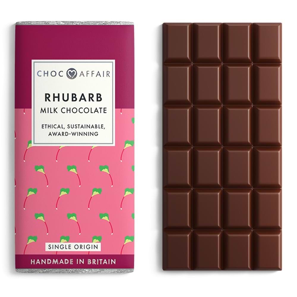Ingredients: Milk Chocolate (Min. Cocoa Solids 41%, Min. Milk Solids 21%) (Sugar, Cocoa Mass, Whole Milk Powder, Cocoa Butter, Emulsifier: Soya Lecithin, Natural Vanilla Flavouring), Natural Rhubarb Flavouring. May Also Contain Nuts & Wheat.