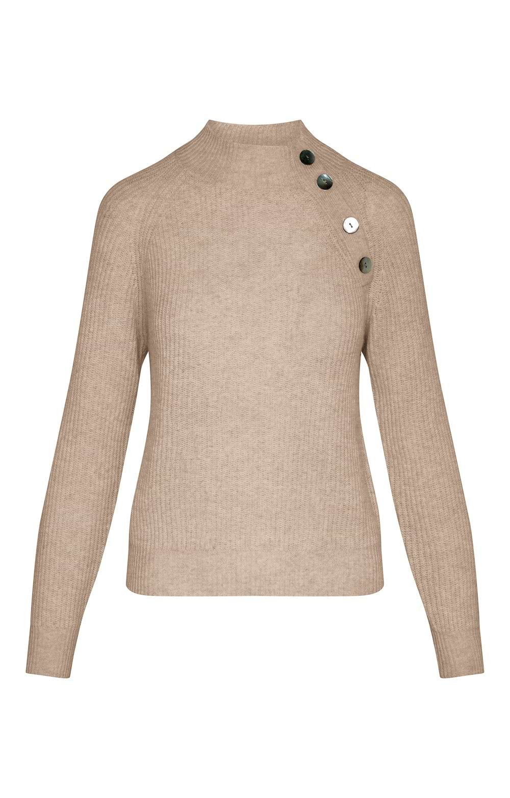 Ladies Lambswool Ribbed Button Funnel Neck Jumper