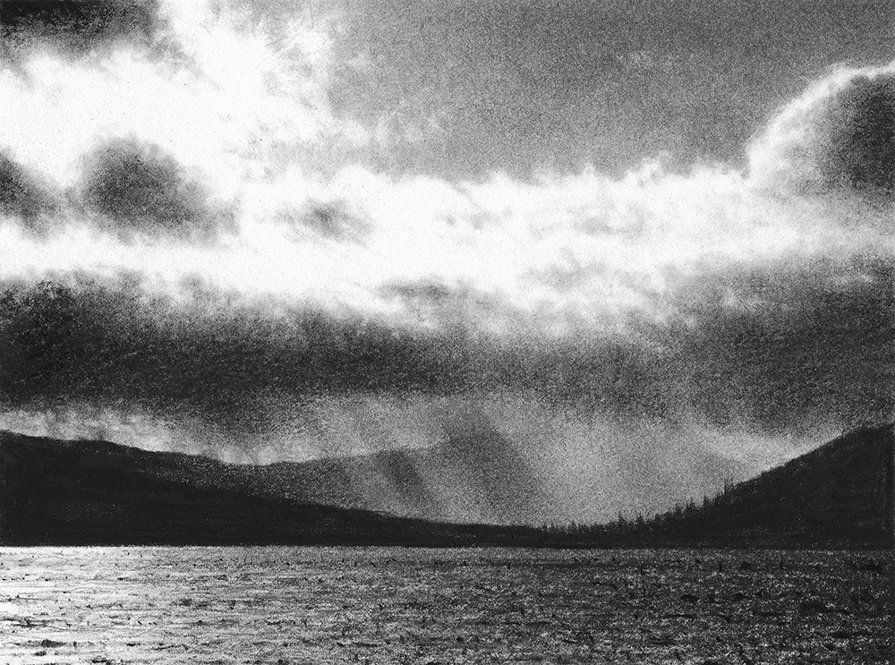 Rowing Toward the Rain on Loch Tay by Philip Edwards