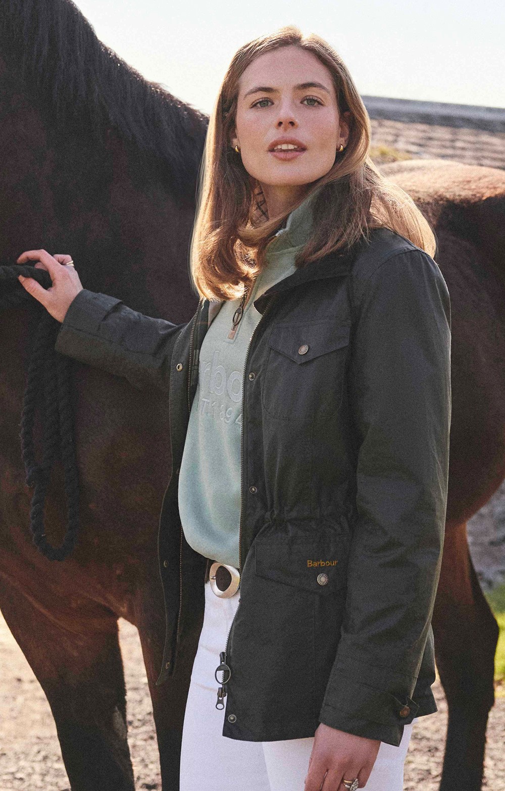 The ladies Barbour sapper wax jacket brings practical pocket utility to a refined country classic.