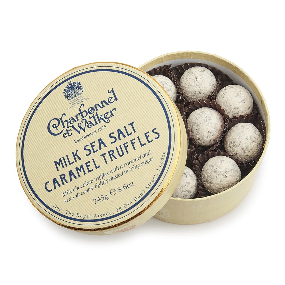 Milk chocolate (sugar, cocoa Butter, whole Milk powder, cocoa mass, emulsifier (soya lecithin), natural vanilla flavouring), salted caramel (37%) (glucose syrup, sweetened condensed skimmed Milk, palm kernel oil & palm oil (from a sustainable source), sea salt (0.9%), emulsifier (mono and diglycerides of fatty acids)), icing sugar. Milk chocolate contains cocoa solids 33.5% minimum, Milk solids 20.5% minimum