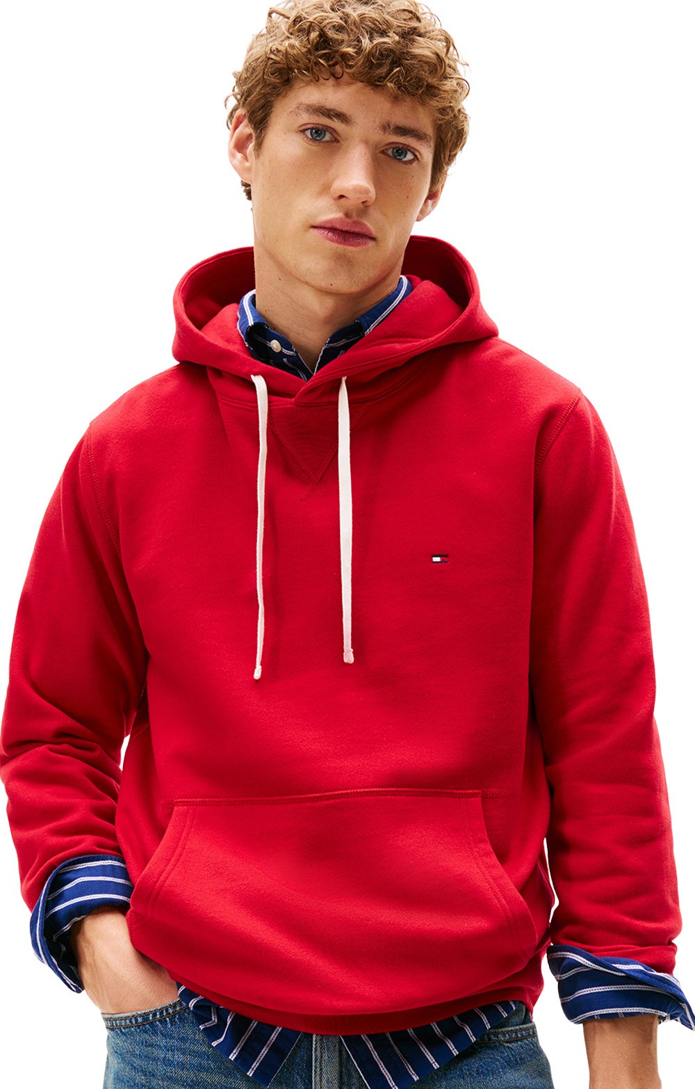 Crafted from a cotton-blend fleece, it provides a soft, cosy feel while retaining durability for everyday wear. The adjustable drawstring hood adds warmth on cooler days, and the kangaroo pocket offers both function and casual style. Signature Tommy Hilfiger branding and flag embroidery at the chest deliver a clean, iconic finish. Rib-knit trims at the cuffs and hem keep the fit secure.