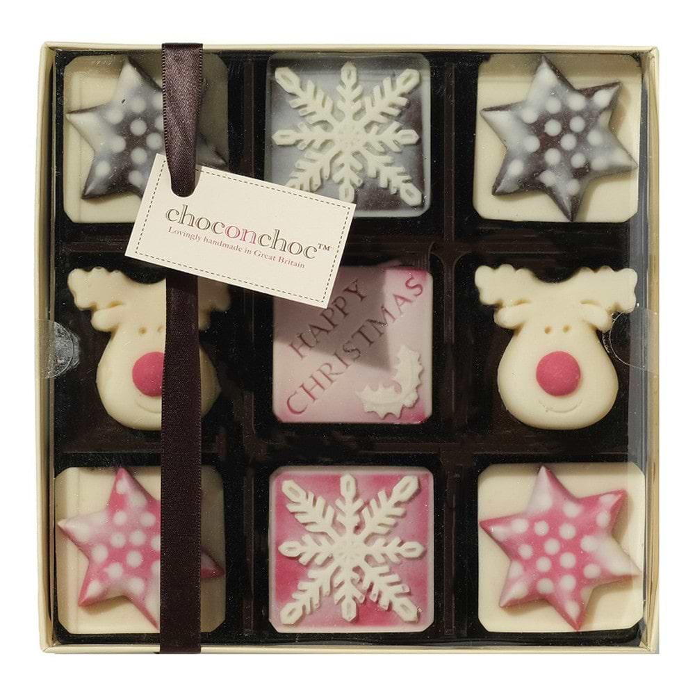 Cocoa mass, sugar, cocoa butter, whole milk powder, emulsifier: soya lecithin, natural vanilla flavouring. Carmine.Dark Chocolate Contains: cocoa Solids 53.5% Minimum. White Chocolate Contains: cocoa Solids 28% minimum, milk Solids 23% minimum. Allergy advice: For allergens see ingredients in bold.May contain nuts.