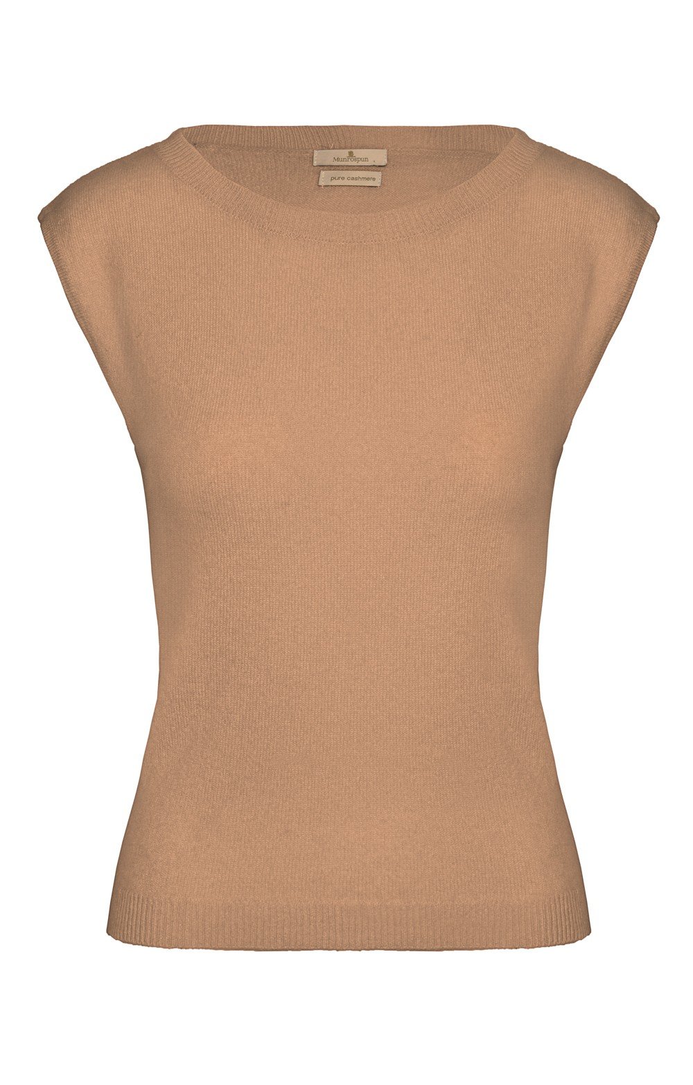 Knitted sleeveless pullover in soft cashmereExtended shouldersBoat/crew necklineTailored shapeDesigned by The House of BruarFeather-light yet supremely warming, this top is perfect to layer over blouses, shirts or long sleeved tops.