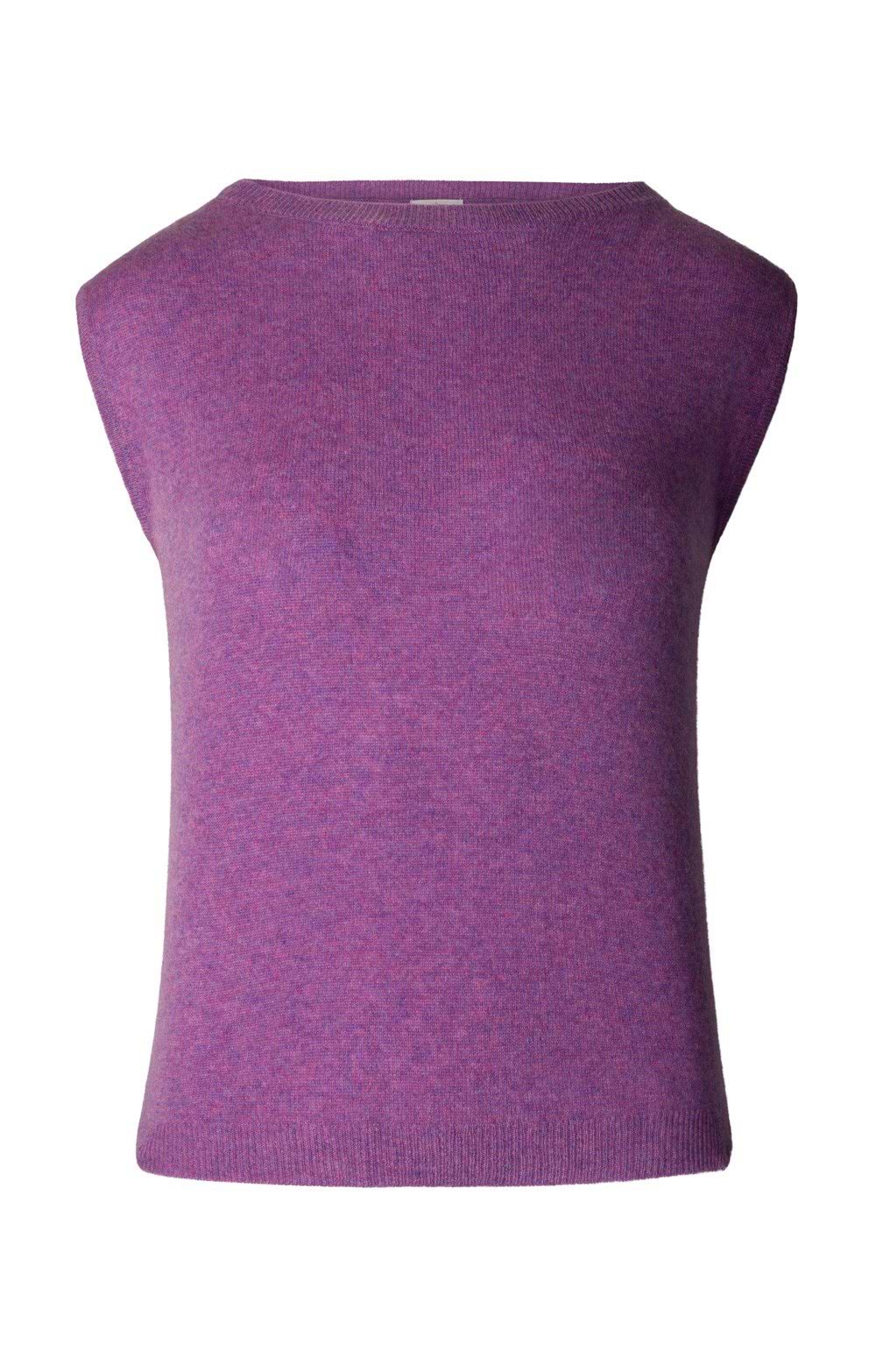 Featuring extended shoulders and a gorgeous fine knit, our ladies sleeveless cashmere crew-neck sweater is a must have wardrobe building block.