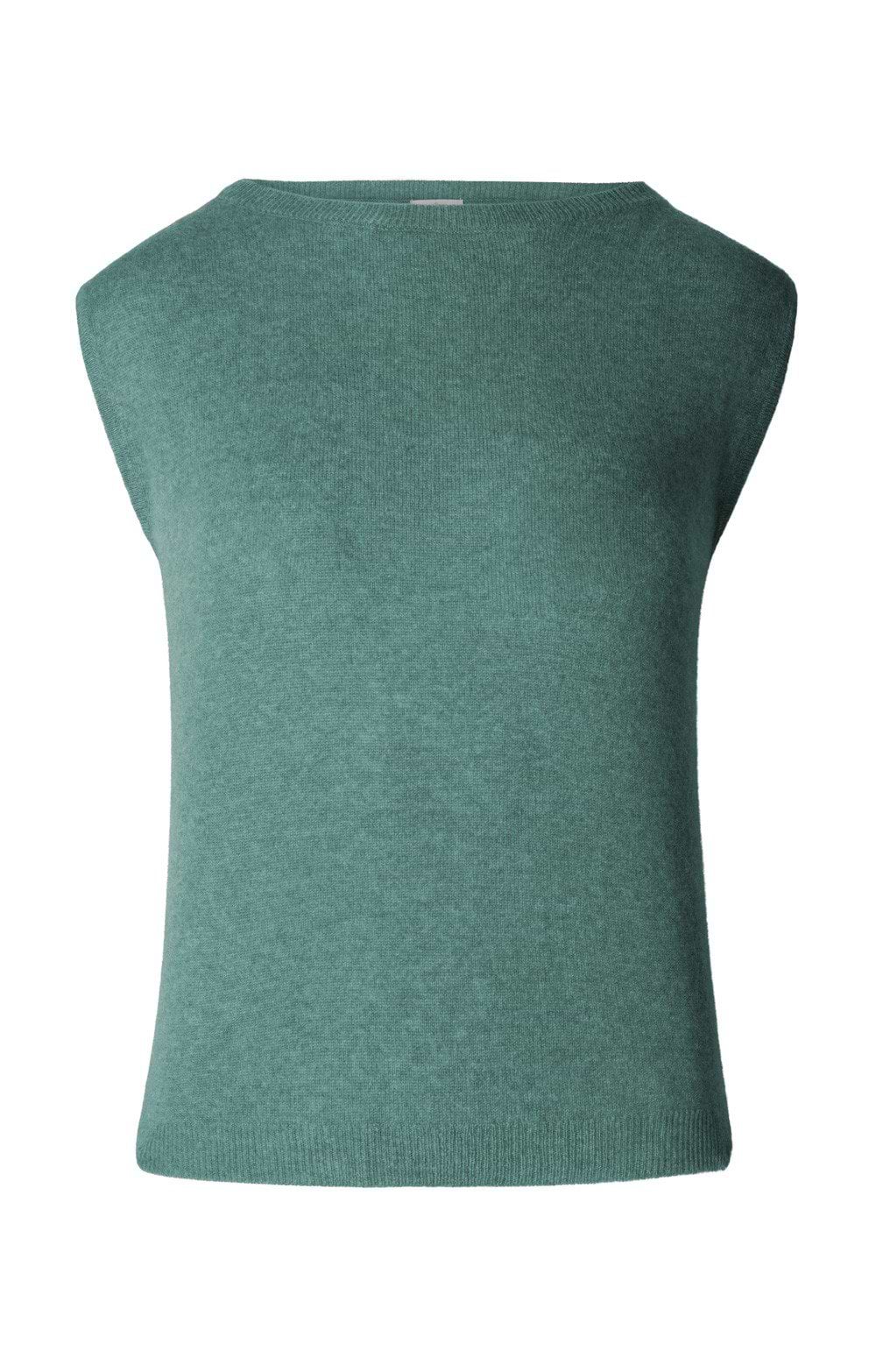 Pure natural cashmere gives this luxurious tank top an extravagant look and soft handle that is wonderfully indulgent. A slight tapering at the waist forms a classic silhouette, complemented by extended shoulders that visually narrow the mid-section.