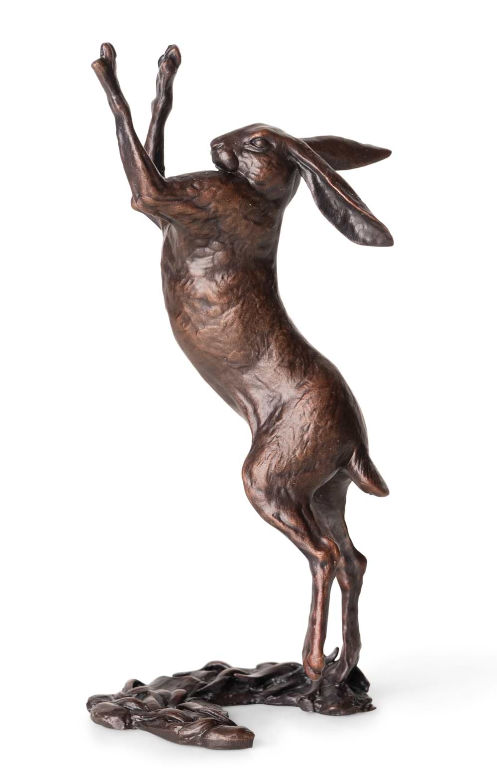 It's easy to see why so many collect images and sculptures of hares. These wonderful country-dwellers are rarely seen but instantly memorable, with their characteristic loping legs and long ears. During the March breeding season, 'mad' March hares compete for females in frenetic boxing matches, and this has been stunningly captured here in foundry bronze, with Michael Simpson's unerring eye for detail and skill in capturing movement. Each of these collectable limited edition casts carries a hand-etched batch number, highlighting its rarity.