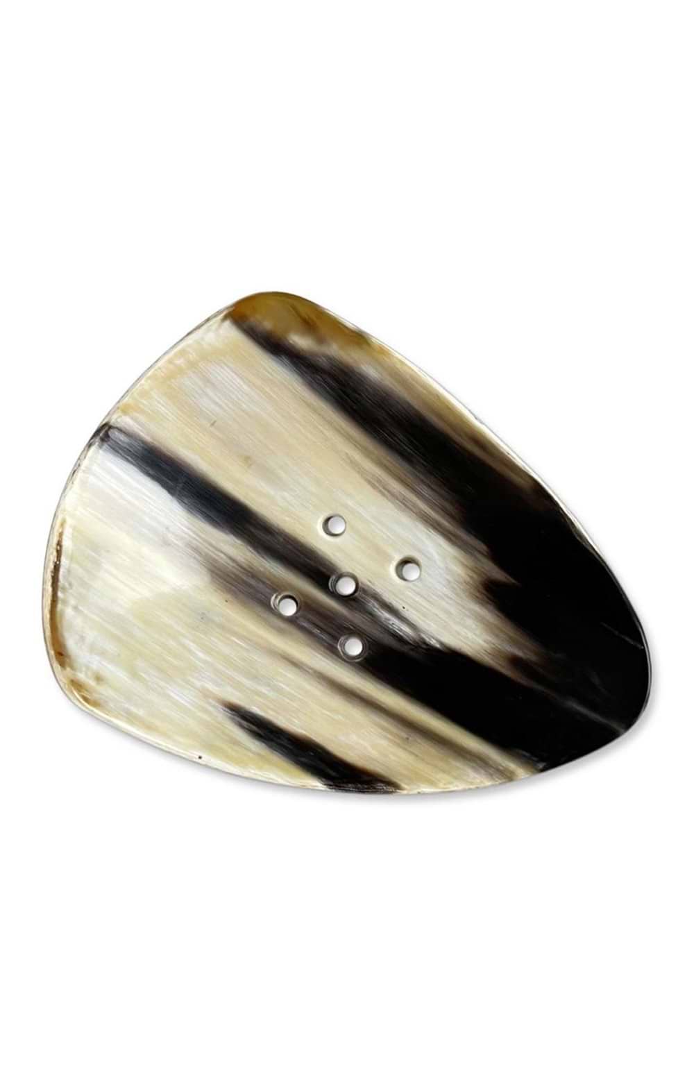A handcrafted cow horn soap dish with drainage holes for added function, this accessory is both eye-catching and naturally practical.
