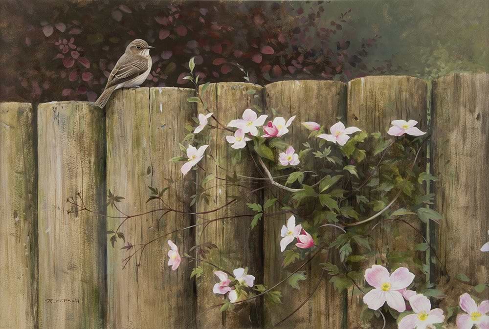 Spotted Flycatcher and Clematis by Rodger McPhail