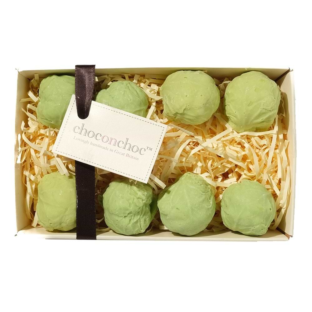 sugar, cocoa butter, whole milk powder,cocoa mass, emulsifier: soya lecithin, natural vanilla flavouring,Spirulina.Colour: Curcumin. White Chocolate Contains: Cocoa Solids 28% minimum, Milk Solids 23% minimum.