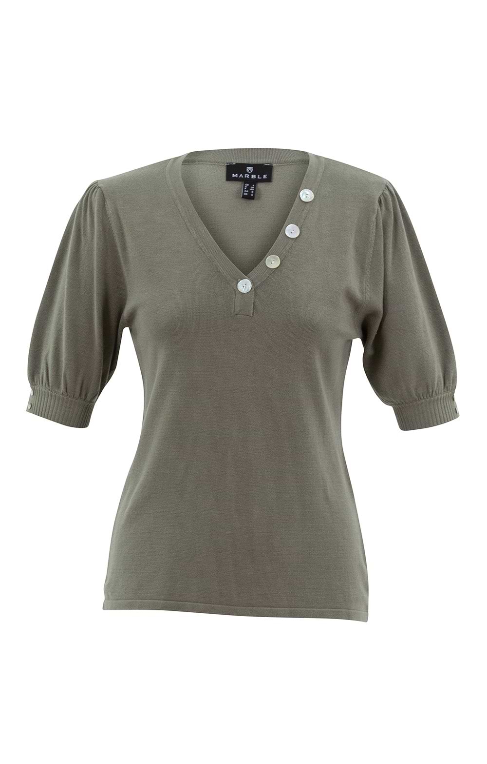 Ladies Marble Short Sleeve V-Neck with Button Detail