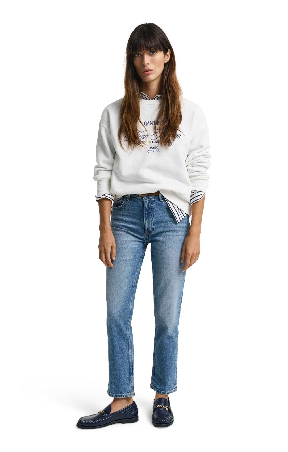 Designed for a regular fit, the ladies Gant straight-leg jeans sit snugly over the hips, providing the ideal balance of definition and comfort.