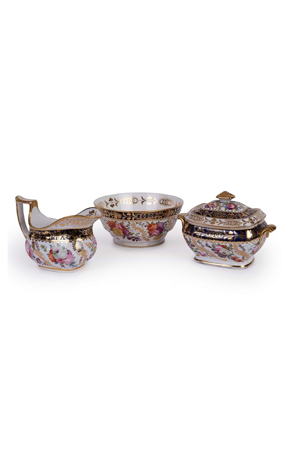 Unbroken Sugar Bowl, Jug, Slop Bowl, English Porcelain Part Tea And Coffee Service, Early 19th Century