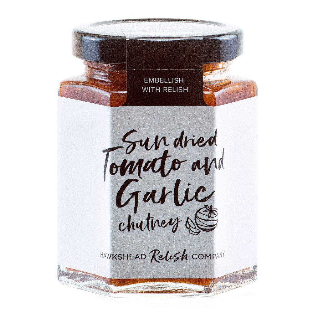 Tomato, Onions, White Wine Vinegar, Demerara Sugar, Sun Dried Tomatoes (7%), Garlic (3%), Tomato Puree, Ginger Puree, Mustard Powder, Hawkshead Relish, Salt, Garam Masala, Black Pepper, Chilli, Mixed Herbs, Paprika.