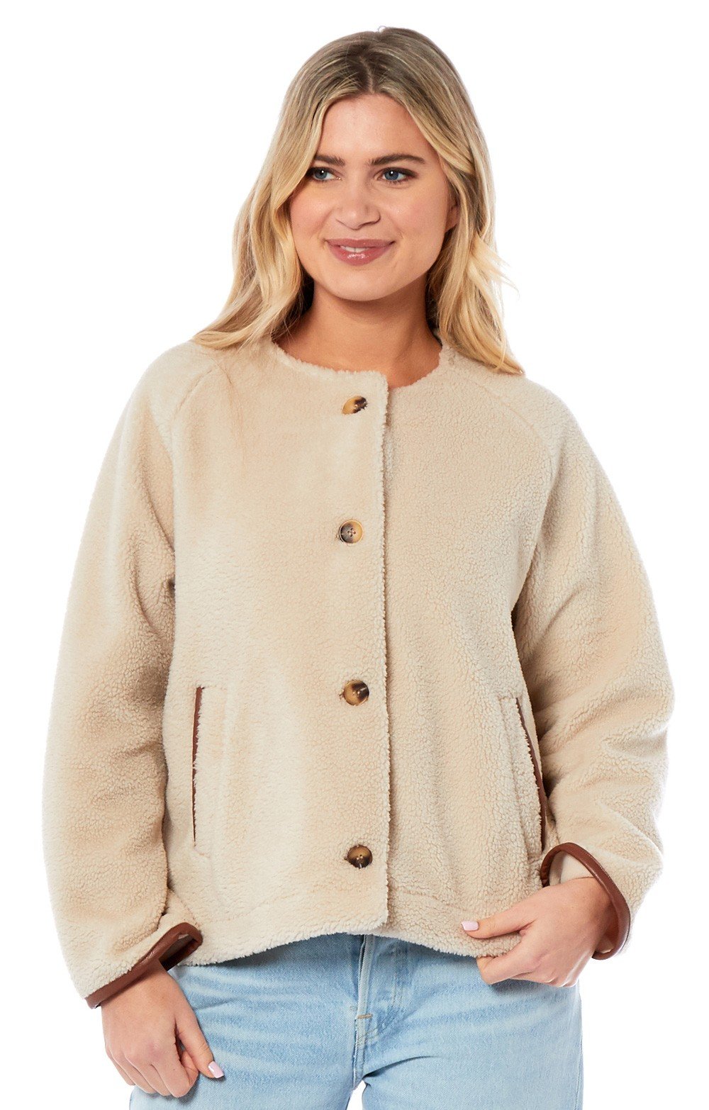 Ladies Teddy Fleece Collarless Jacket