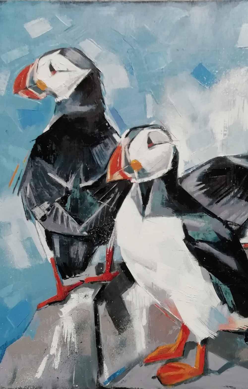Three Puffins by Gwen Adair