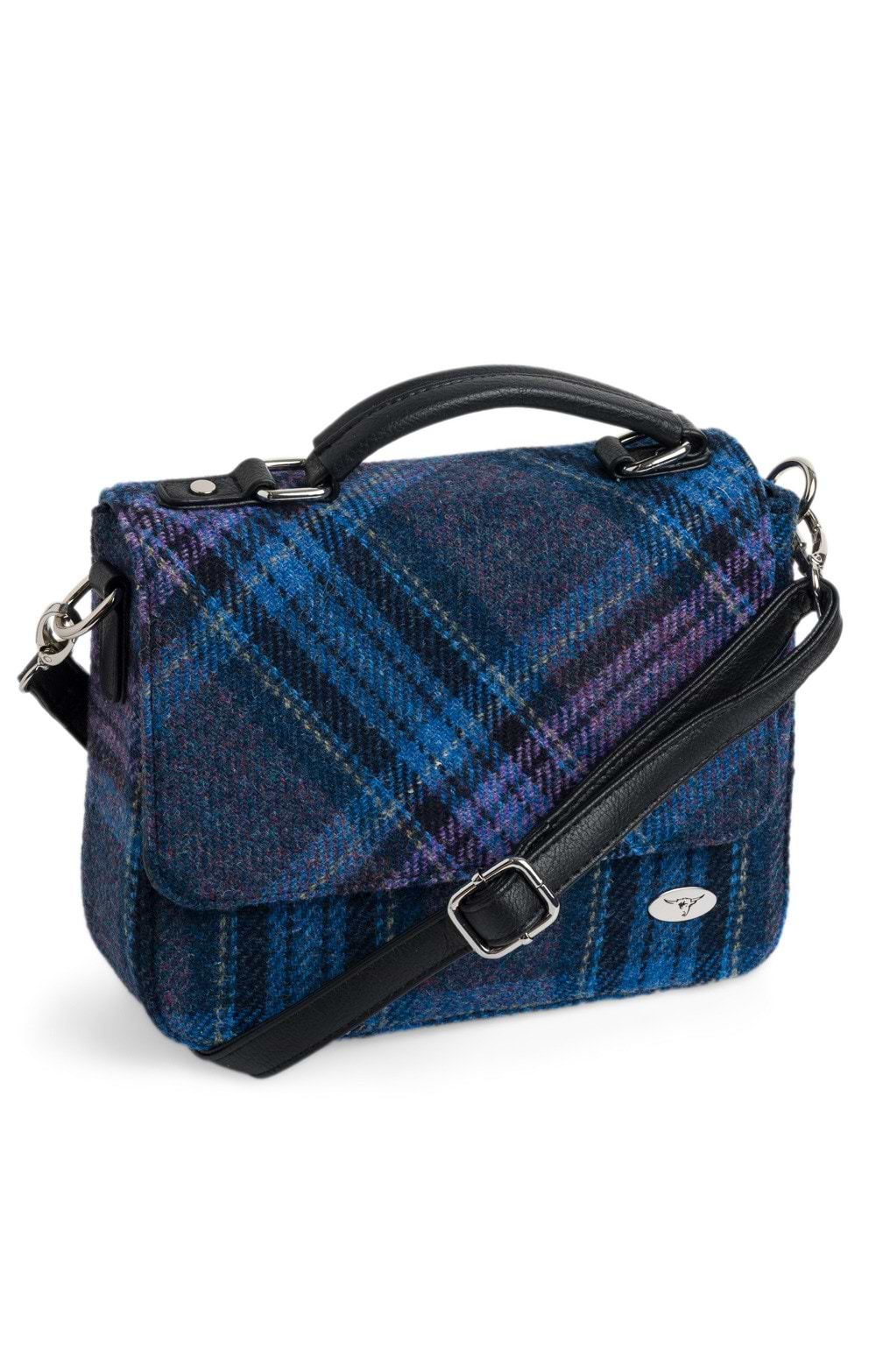 Foldover bag in Harris Tweed®Faux-leather carry handle to topDetachable and adjustable shoulder strapSilvertone hardwareGlen Appin metallic logo badge to lower frontUsing a rustic country tweed but crafting it into a smart, non-slouch design makes this bag extremely adaptable, quite suitable for daily errands or smarter occasions. Needless to say, it makes a fabulous gift for Harris Tweed® addicts, or just someone looking to add something different to their bag collection.