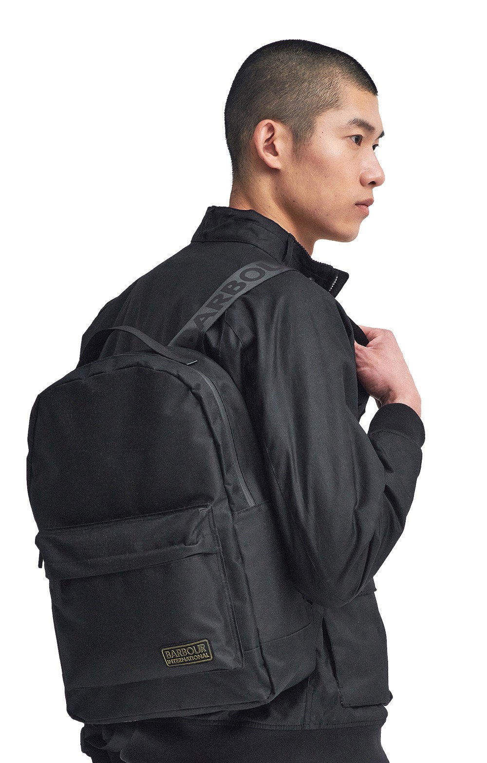 Crafted from durable materials, this minimalist piece offers ample storage while maintaining a streamlined silhouette. Featuring a front zipped pocket for easy-access essentials, a inner laptop sleeve and bold branded shoulder straps for comfort for a touch of signature Barbour International style, this backpack is both functional and chic.