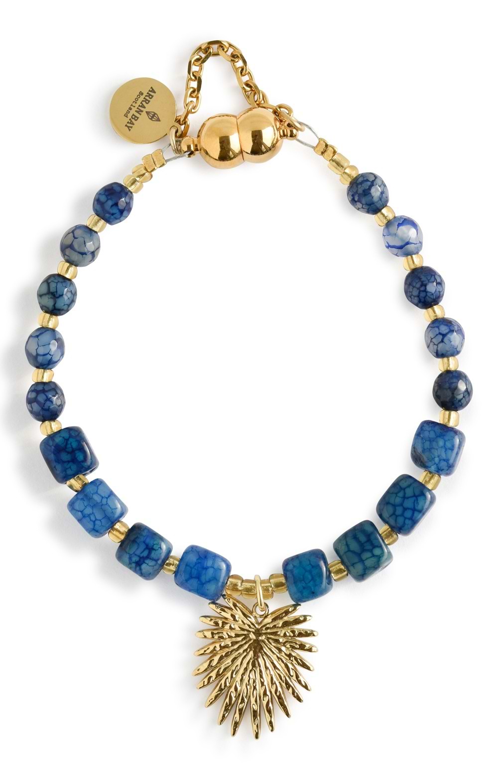 This ladies Arran Bay agate with gold palm pendant bracelet blends a touch of coastal charm with Scottish craftsmanship.