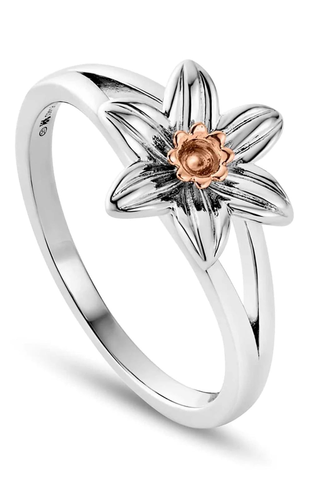 The ladies Clogau daffodil ring is crafted from sterling silver with rare Welsh gold, inspired by the Welsh national flower.