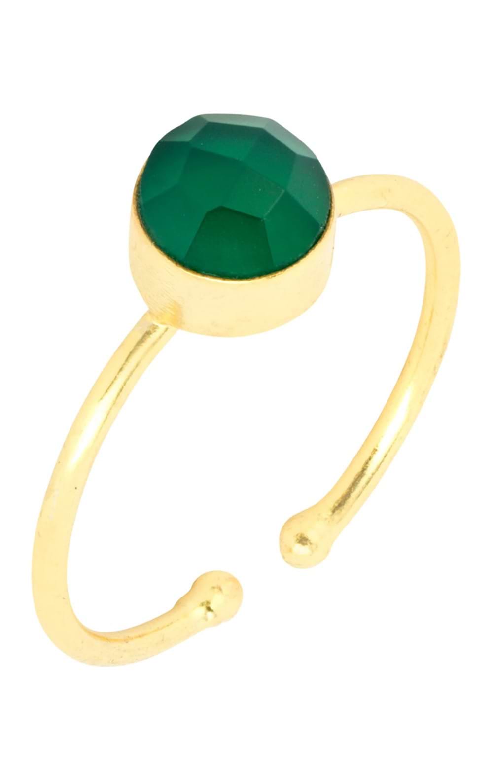 Adjustable open ring with hand-cut genuine gemstoneCrafted in lustrous 22 carat gold-plated brassRound shaped stone for pretty, feminine lookThe Ashiana Dotty round gemstone ring is perfect for those who appreciate subtle elegance and a touch of glamour.