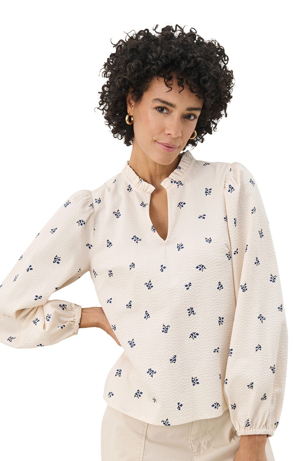 Ladies Part Two Eimy Flower Frilled Neck Blouse
