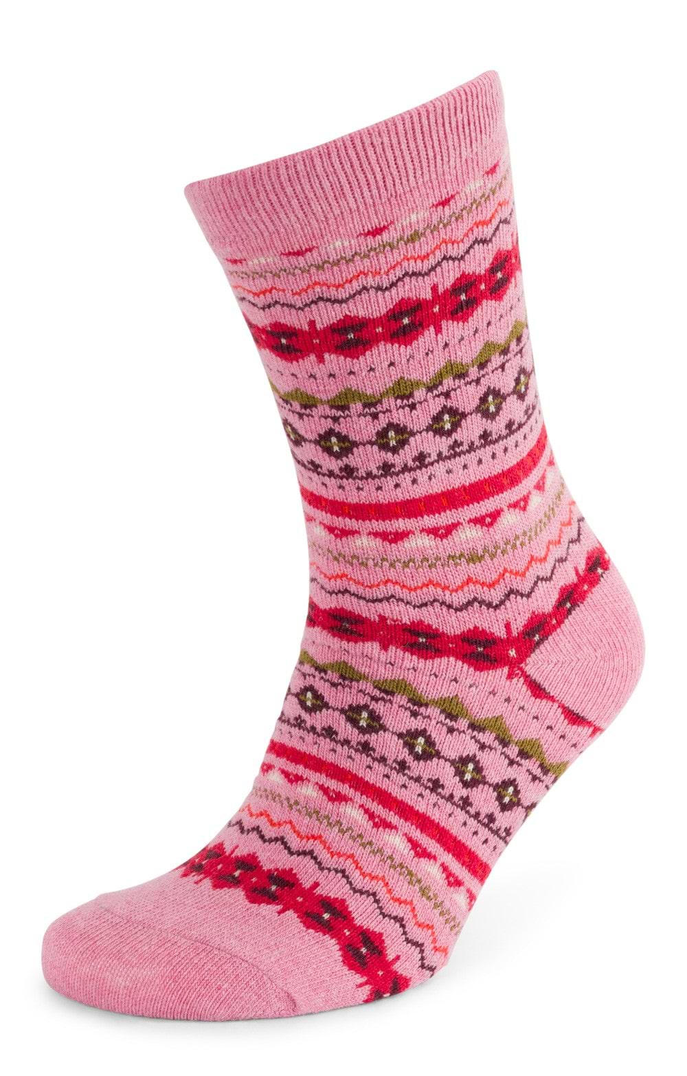 Soft merino wool blendTraditional Fair Isle patternsThicker style for warmthNatural insulationOrganic cotton and recycled contentFits women's shoe sizes 4-7Perfect for loungingThese cosy socks are ideal for wearing around the house with slippers, inside wellies for country walks, or simply for keeping feet warm whilst curled up with a good book on winter evenings.