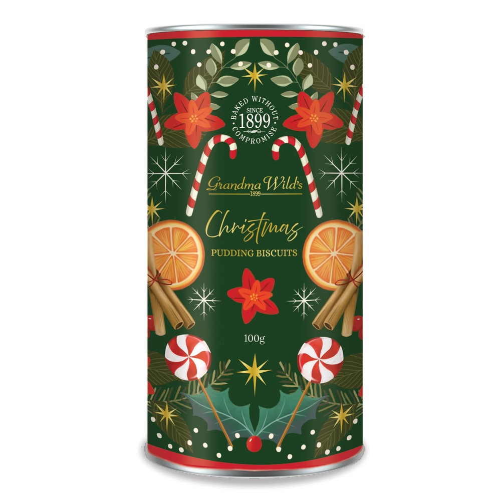 Festive biscuits in festive tubeFourth generation traditional recipesCharming and compact packaging