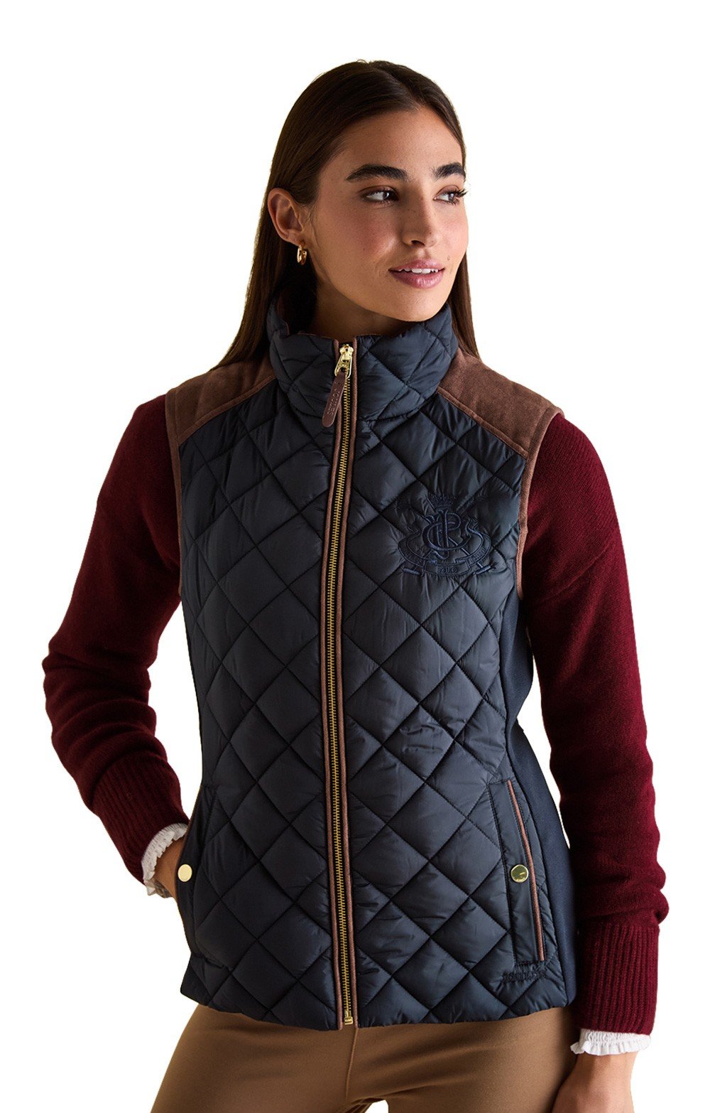Diamond quilt showerproof giletStand collar with faux suede liningZip fastening with protective stripFaux suede shoulder patches and trimsJoules crest embroidery to chestAdjustable back tabHand-warmer pockets with press-stud fasteningsCurved hem, lower at the backJoules embroidery to back collarEnjoy wearing with a country shirt and jodhpur-style trousers for equestrian-inspired style, or throw on over a favourite light jacket to add warmth and water resistance as the seasons transition.