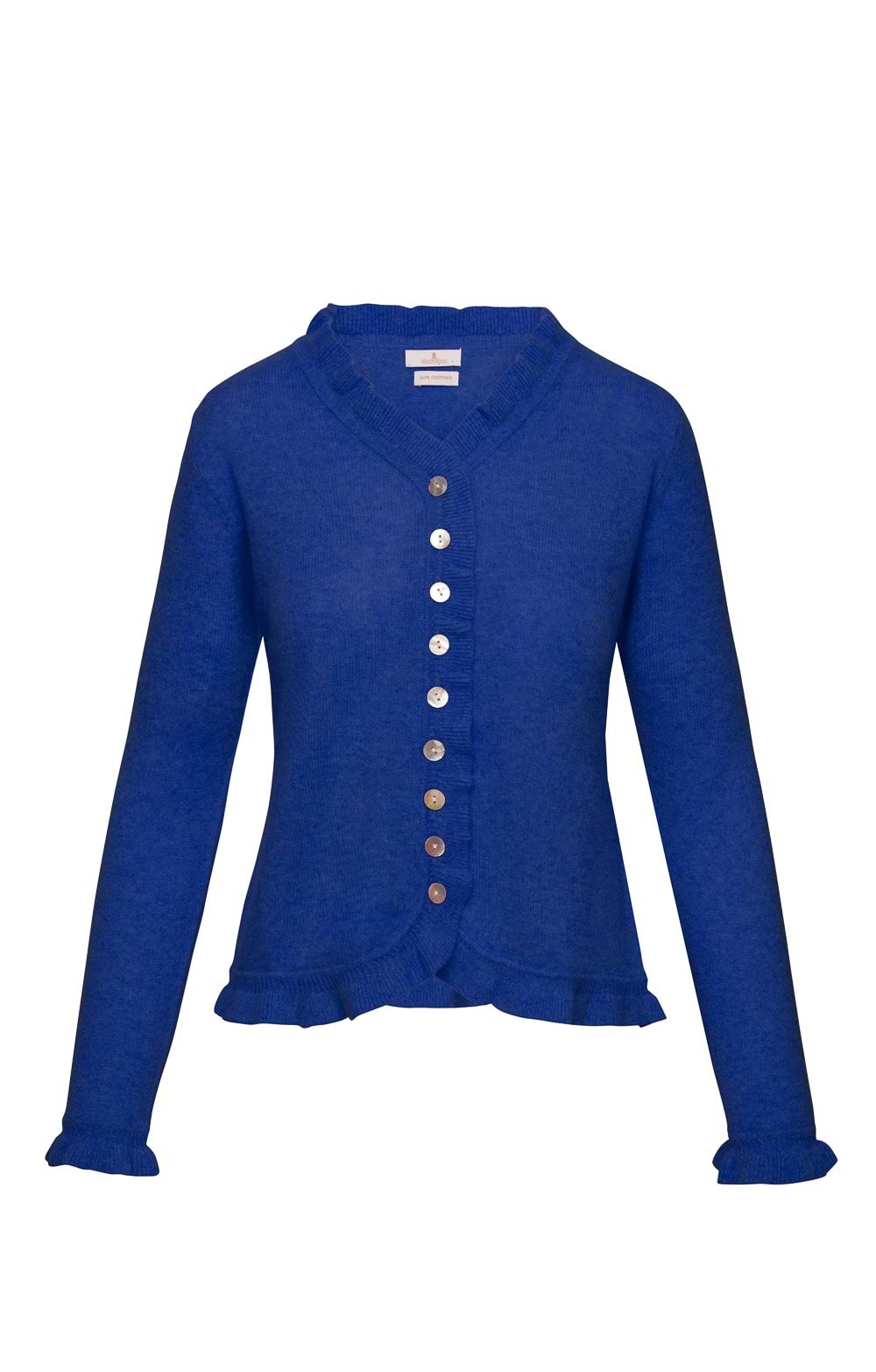 With its soft texture and playful frills, this ladies cashmere cardigan adds a little extra joy to your layering line-up without ever feeling too fussy.