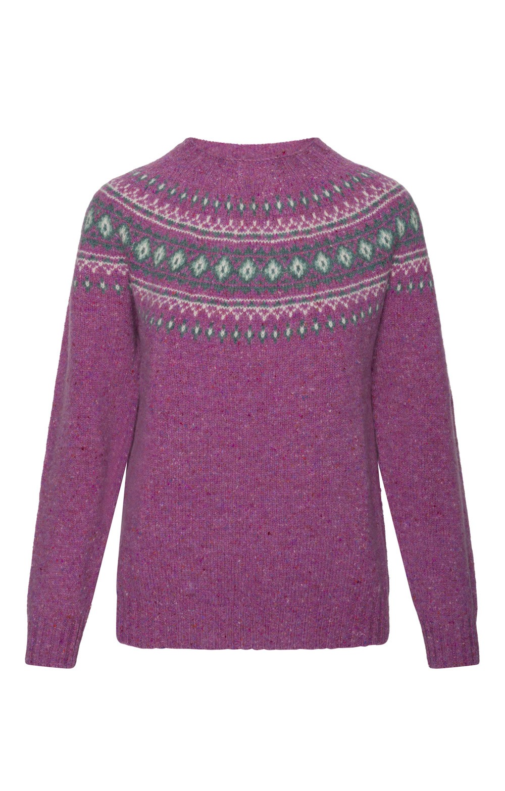 Scottish knitted jumper in soft flecked lambswoolFairisle designRelaxed fitRelaxed double-ribbed necklineEnjoy wearing this wonderful jumper with your favourite moleskin jeans, cord skirts or denims, adding leather boots and a tweed jacket for a covetable country look.