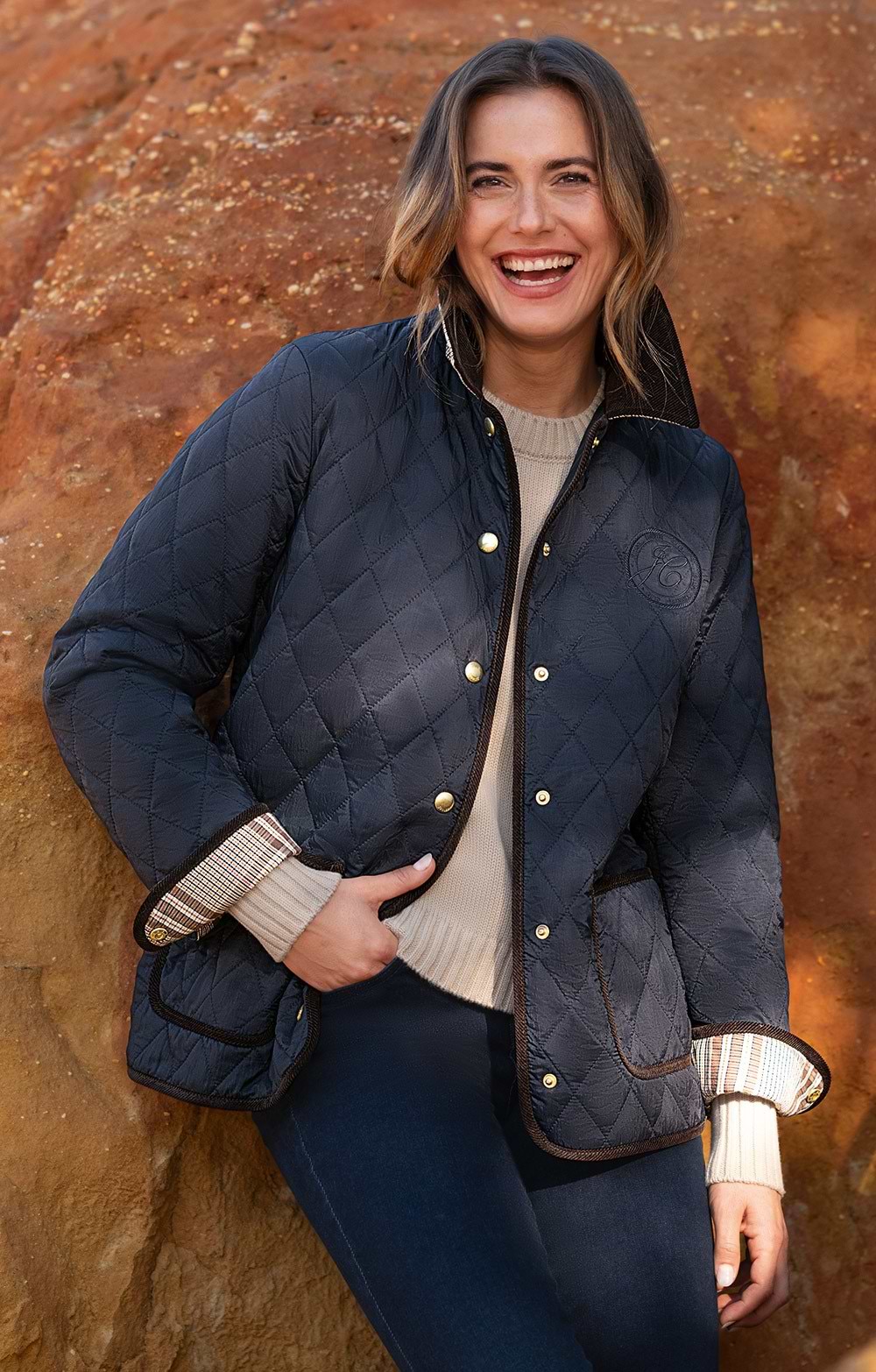 Diamond quilt jacket with showerproof fabricFlat wadding for a touch of warmthCorduroy collarCorduroy pipingExclusive check pattern liningZip and press-stud fasteningSlightly dropped shoulders for a relaxed feelTwo front patch pocketsJoules branded embroidery to the chestThis jacket will look great with most outfits, smart enough to wear with wide leg trousers and a crisp shirt for work, but casual enough to look great with jeans or jodhpurs and wellies for a splashy country dog walk.