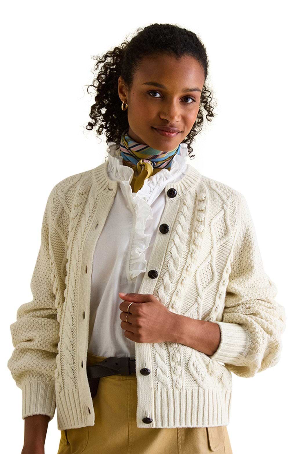 Combining beautiful Aran-knit inspired cabling with a relaxed modern fit, the ladies Joules Rafferty cable knit cardigan is a new season essential.