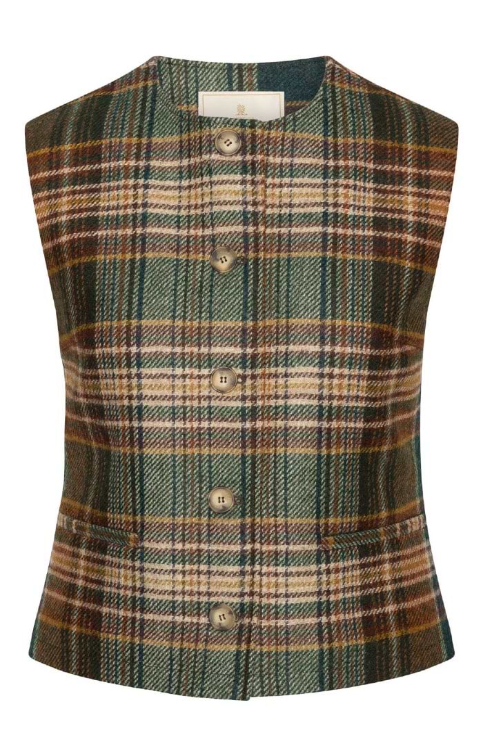 Casual country waistcoat in pure wool British tweedCrew neckHouse of Bruar buttonsWelt pocketsDesigned by The House of BruarThis elegant piece will look wonderful over an A-line skirt and a country shirt or stand collar blouse, but will work just as well over a soft turtle-neck and your favourite jeans.