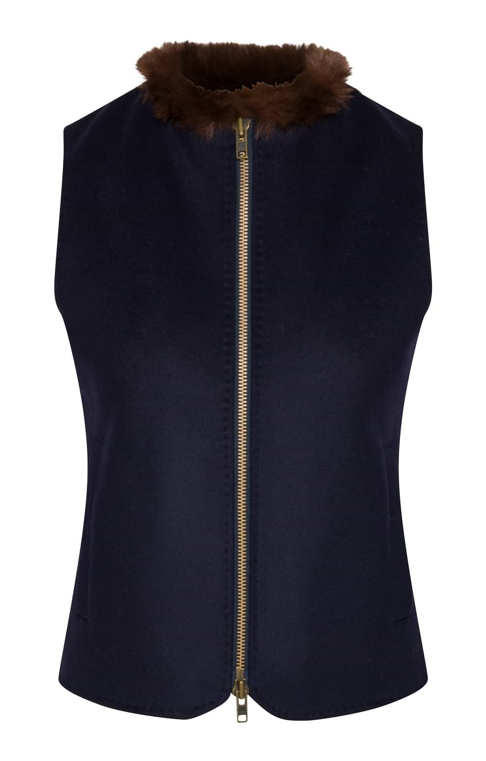 Elegant, unfussy and thoroughly decadent, this delightful ladies wool cashmere faux fur waistcoat is a covetable winter warmer.
