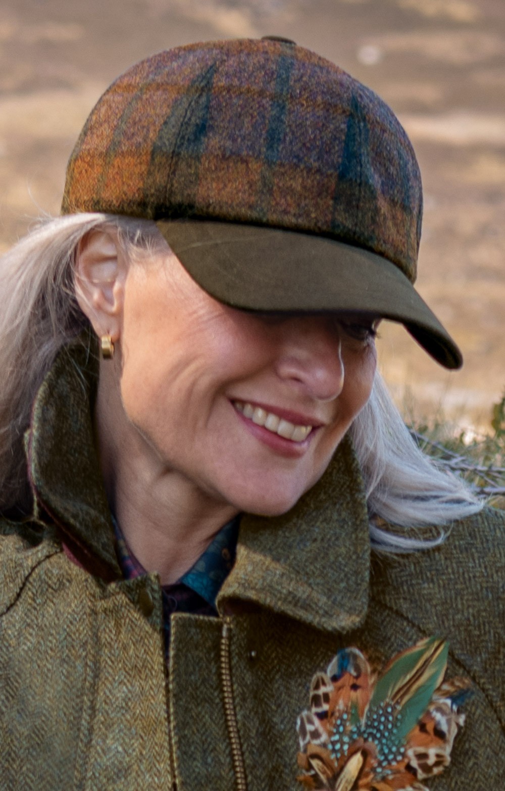 Crafted in premium pure new wool tweed with a moleskin peak, this ladies British tweed baseball cap puts a contemporary spin on a timeless classic.
