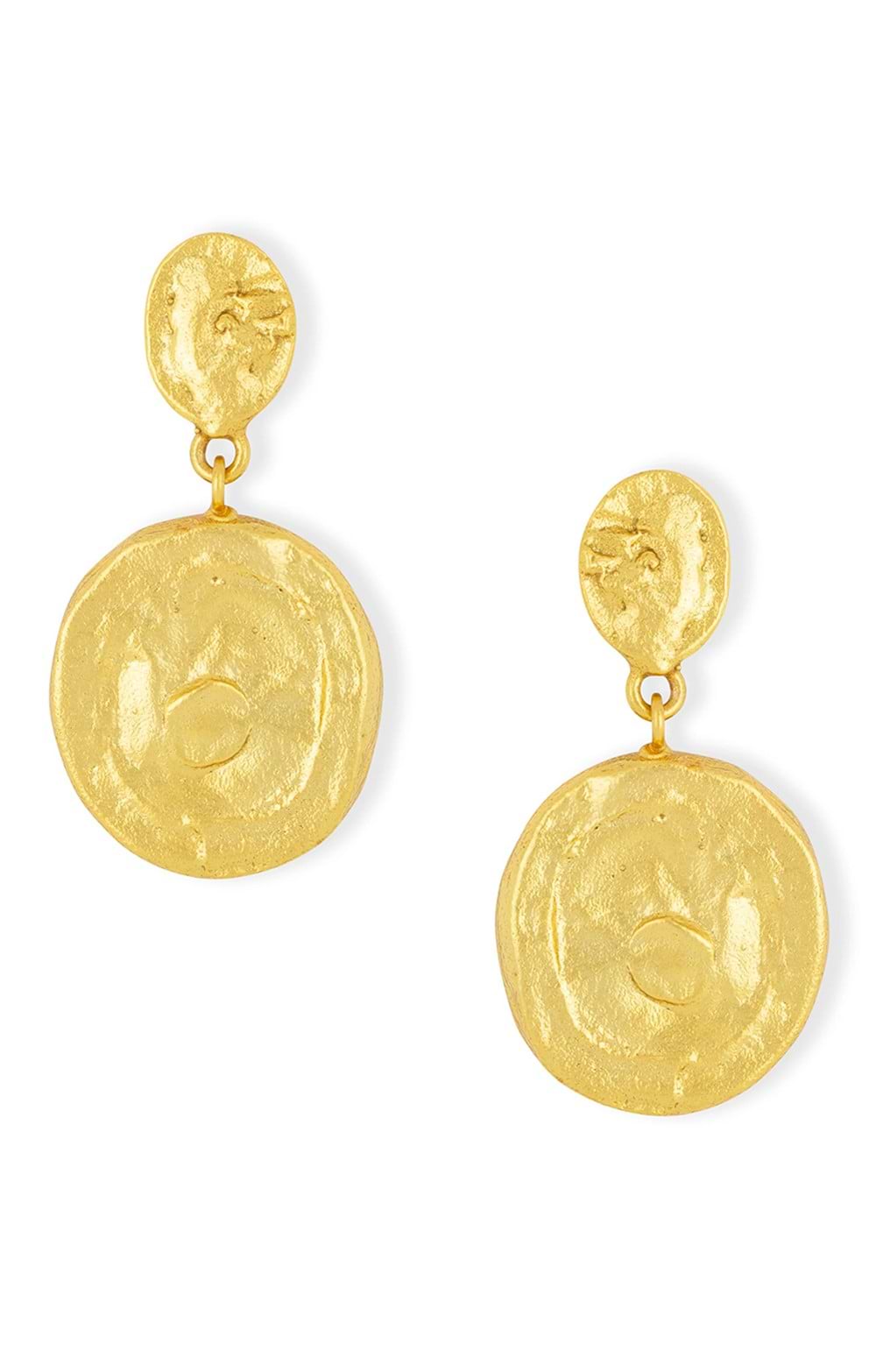Molten coin drop earringsSecure stud fasteningUnique organic texturePair with the sunset coin necklace in the same collection for a coordinated look or wear solo as a statement piece.