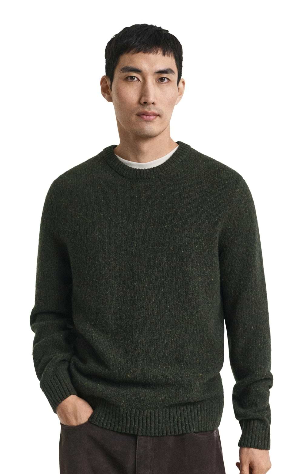 Premium wool blend with neps textured jumperClassic crew neckRegular fitRibbed neck, hem, and cuffsNatural warmth and breathabilityVersatile stylingPerfect for the office layered over a shirt with tailored trousers or wear with dark jeans and desert boots for relaxed weekend style.