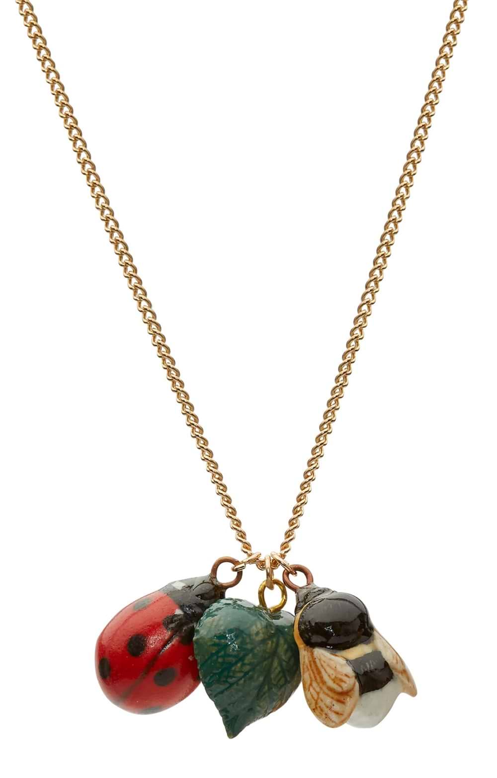 Ladies Ladybug Leaf and Bee Charm Necklace