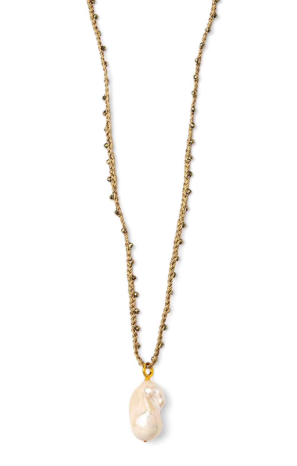 Ladies Gold Braided Chain Necklace with Baroque Pearl