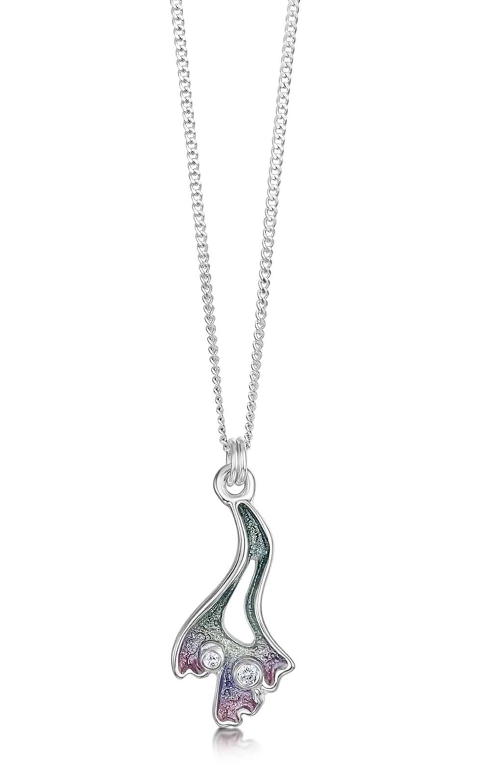 Sterling silver pendant with Mill Sands enamelInspired by seaweed forms from the Orkney coastlineAccented with two cubic zirconiasIncludes a sterling silver curb chainHandcrafted and enamelled in Orkney by Sheila FleetPerfect for those who appreciate understated craftsmanship and natural motifs, this pendant brings a touch of the sea's serenity to your jewellery collection.