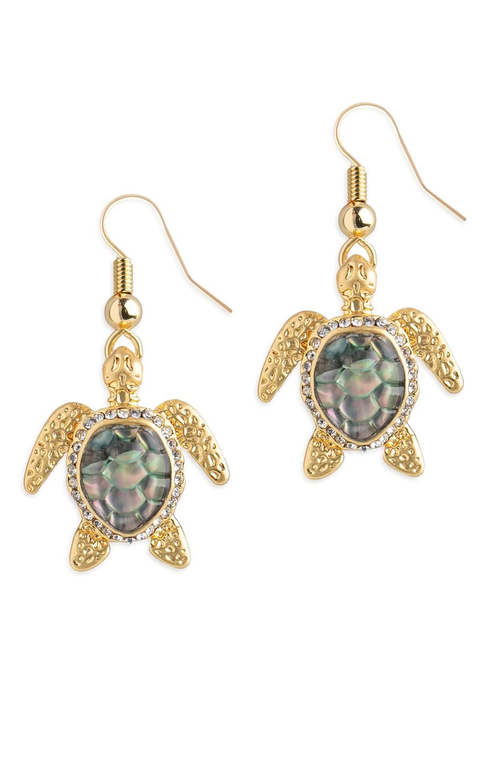 Resin-adorned turtle with crystal accents drop earringsDrop approx. 3.5 cm long and 1.8 cm wideFish hook fastening for comfortable wearThese charming turtle earrings are a fun and elegant way to treat yourself or someone special.