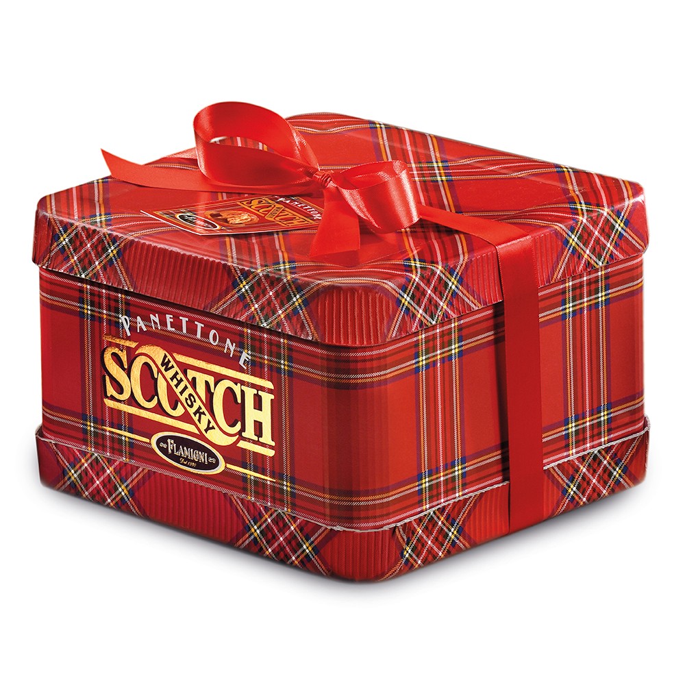 Presented in a gorgeous tartan pattern box, this special panettone is made in the best Italian traditions, but with a twist. Whisky cream (the Scottish version of Bailey's Liqueur) is used as a filling to give creamy sweetness and a faintest suggestion of an alcohol hit. For even more indulgence, a caramel icing coating enhances the domed top.
