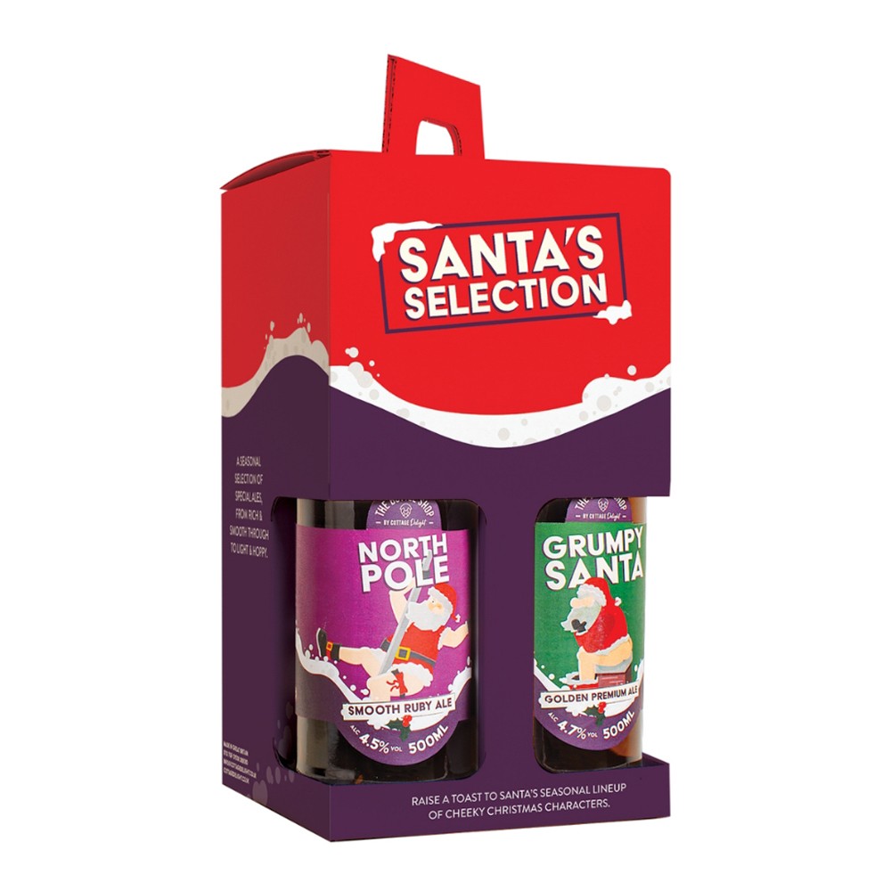 Stuffed Turkey - Crisp Light Ale (Alc 4.5%vol), Snow Balls - Light Hoppy Ale (Alc 4.2%vol), North Pole - Smooth Ruby Ale (Alc 4.5%vol), Grumpy Santa - Golden Premium Ale (Alc 4.7%vol). Contains BARLEY & WHEAT